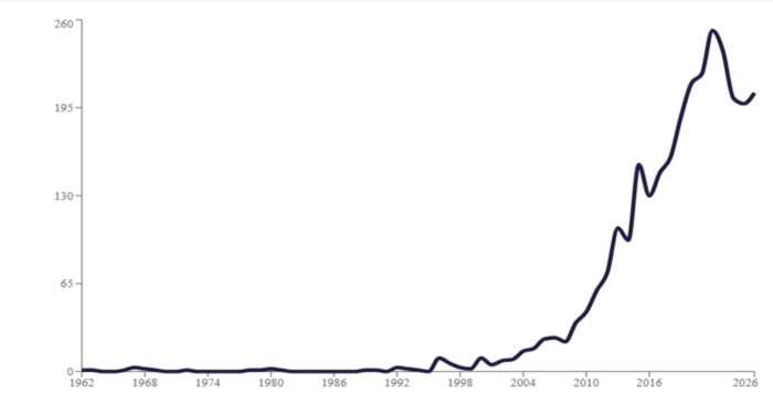 Le nombre de publications mentionnant le poisson-zèbre connaît une croissance exponentielle depuis les années 2000